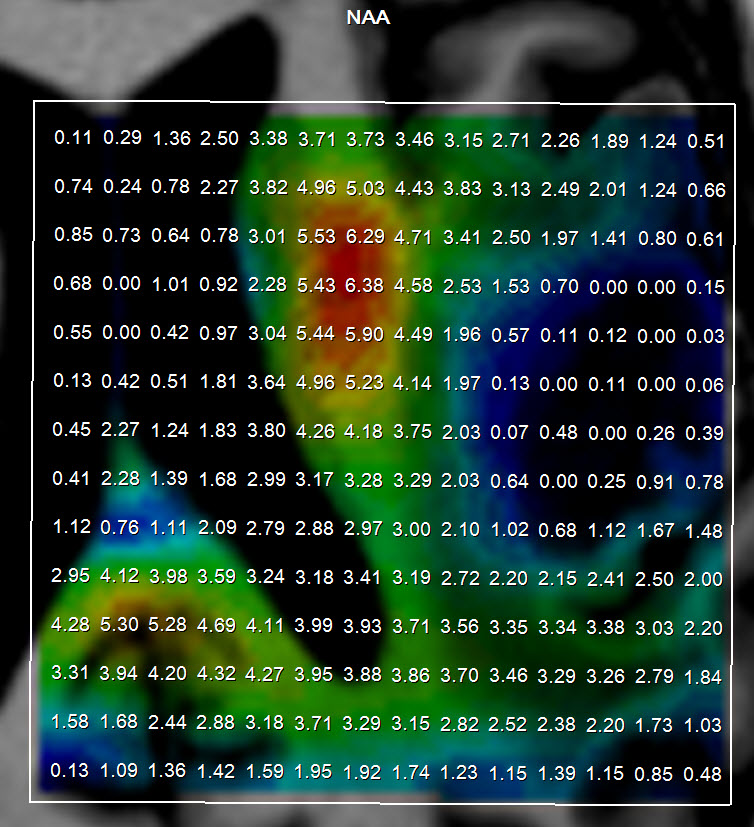 Distribution of NAA showing complete destruction of neural tissue