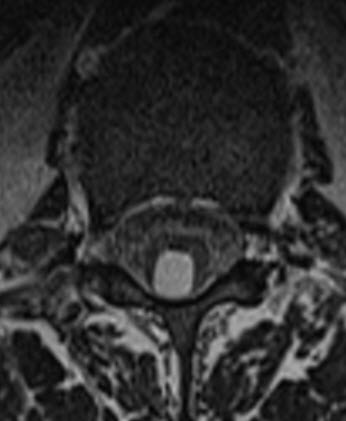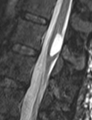 CYSTIC INTRAMEDULLARY LESION OF THE CONUS MEDULLARIS BEHIND L1.