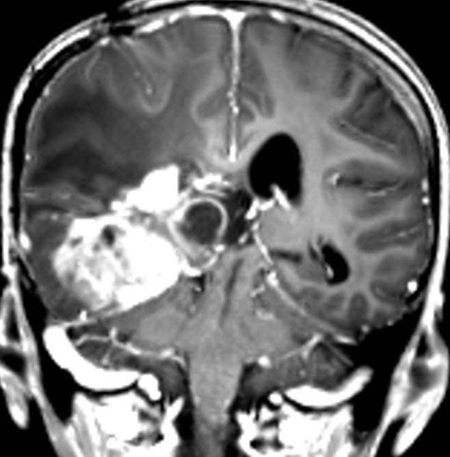 RECURRENCE OF HIGHLY MALIGNANT GLIOMA RIGHT CONVEXITY.