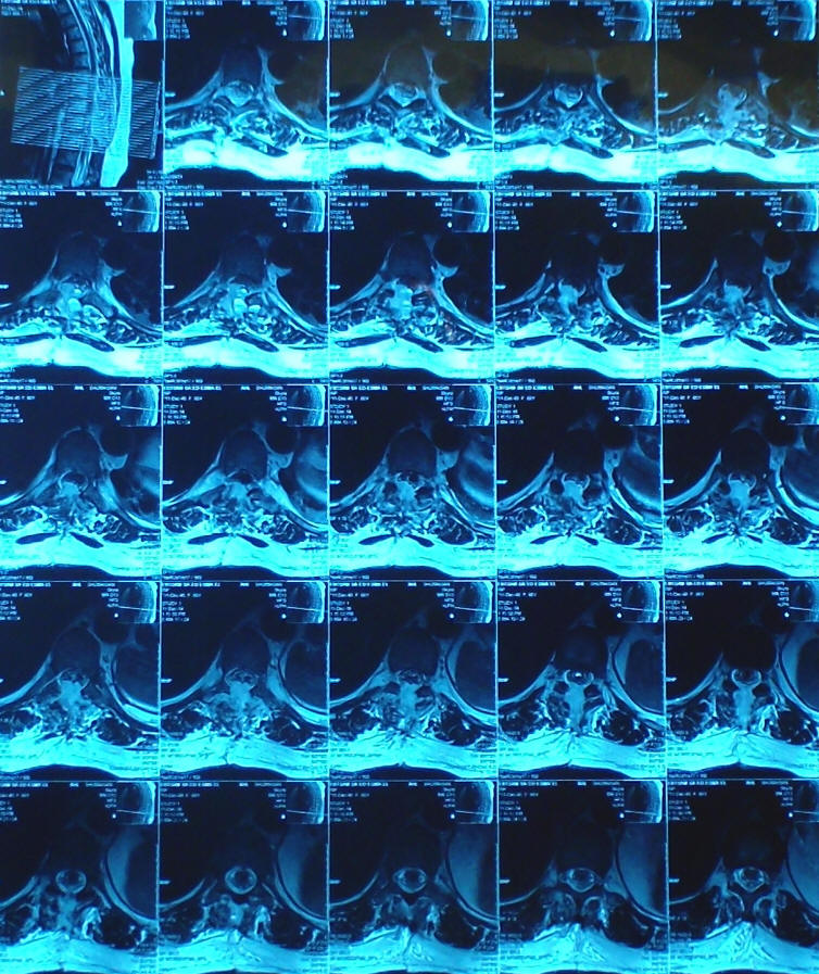 Intraoperative MRI axial views showing that the spinal cord mass was
