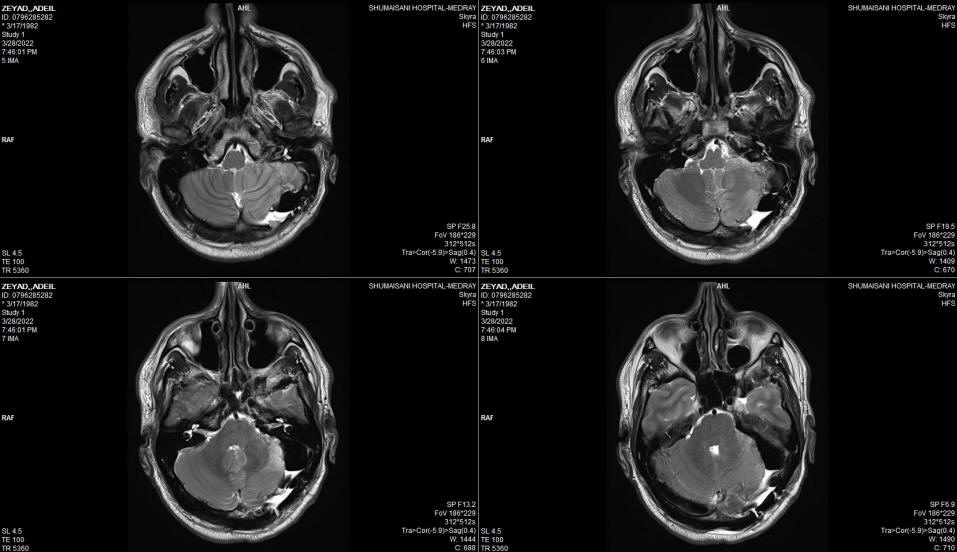 Fig:-3 Severe malacia and atrophy of the left cerebellar hemisphere